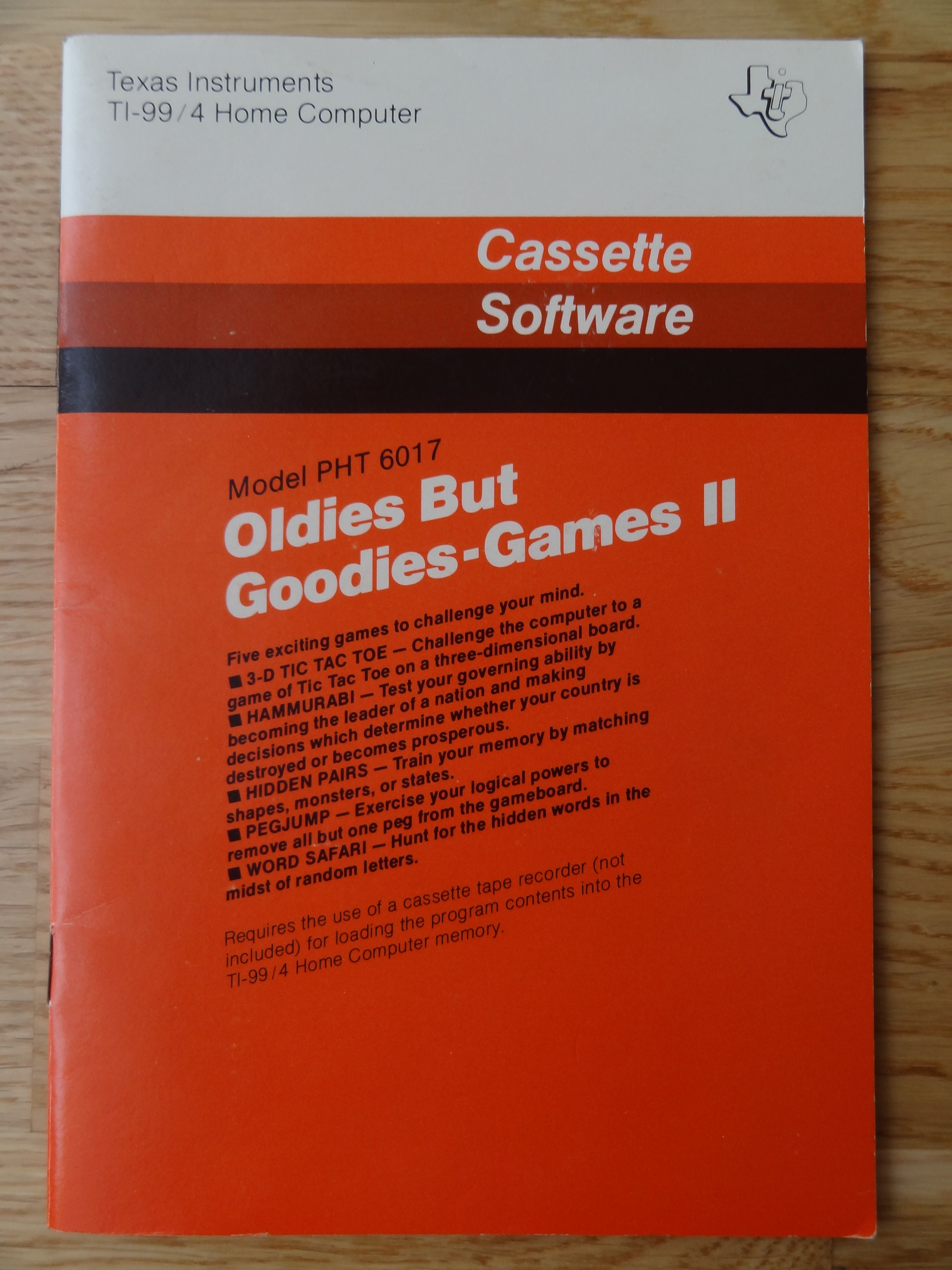 Oldies But Goodies – Games II Manual Cover ← Previous Next → Oldies But Goodies – Games II PHT 6017, 1041557-517 © 1980 Texas Instruments Texas Instruments Home Computer Cassette Software
